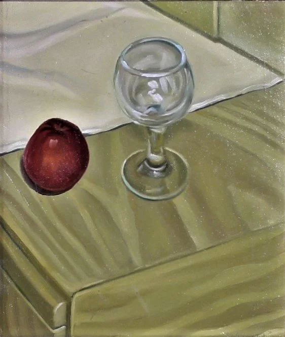 Apple- Wine Glass, oil on canvas, 12x16” -year 1979