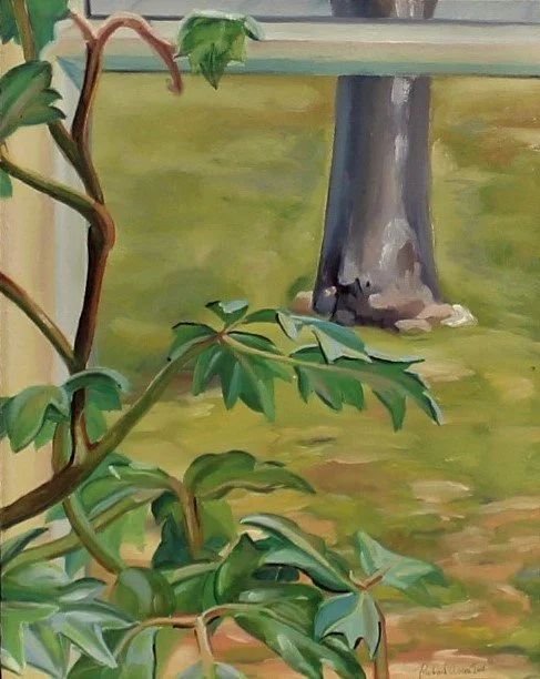 Plant Through Window, oil pastels on rag paper, 20x26” - year 1987