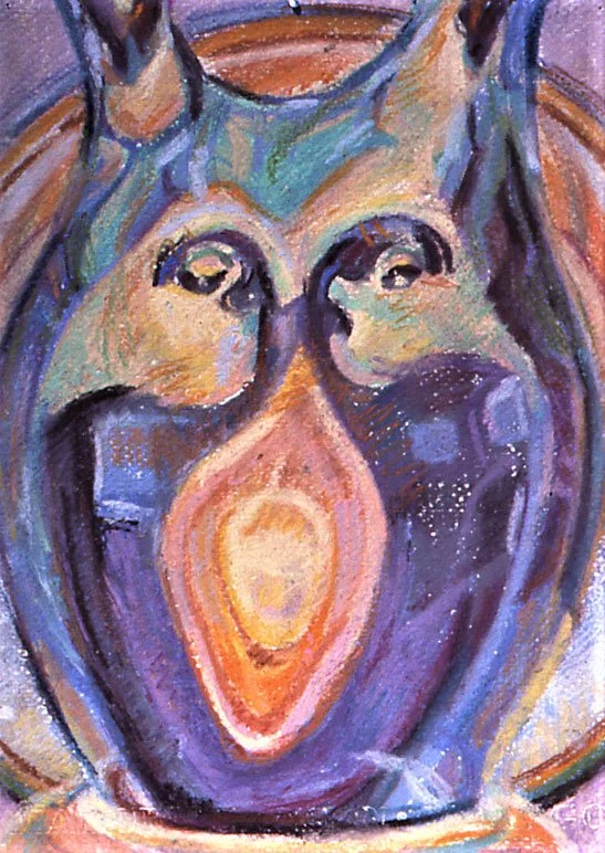Glass Owl, oil pastels on rag paper, 7x10” -year 1982
